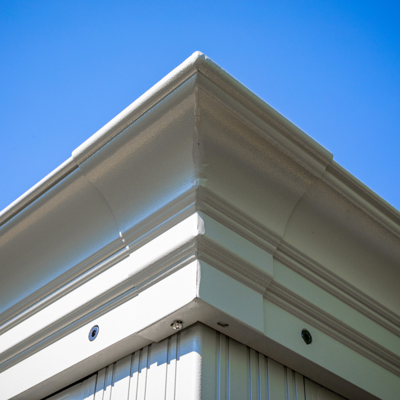 Le pavillon Striano possède des parois constituées de cadres en aluminium sur lesquels sont tendues des moustiquaires, pour une protection optimale contre les insectes nuisibles. Chaque paroi est munie d’une double porte moustiquaire coulissante de dimensions 140x210cm pour les largeurs et 205x210cm pour les longueurs. La structure en aluminium est thermo laquée, et se compose de 4 poteaux robustes de 76mm de côtés qui soutiennent la toiture en acier galvanisé à l’agencement horizontal.